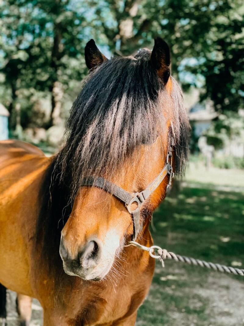 Ze heeft bij ons een prachtig merrieveulen gehad in 2021 en we hebben haar daarna weer volledig ingezet als rijpaard. Glenna is braaf bij de hoefsmid, in de kudde en op de trailer.